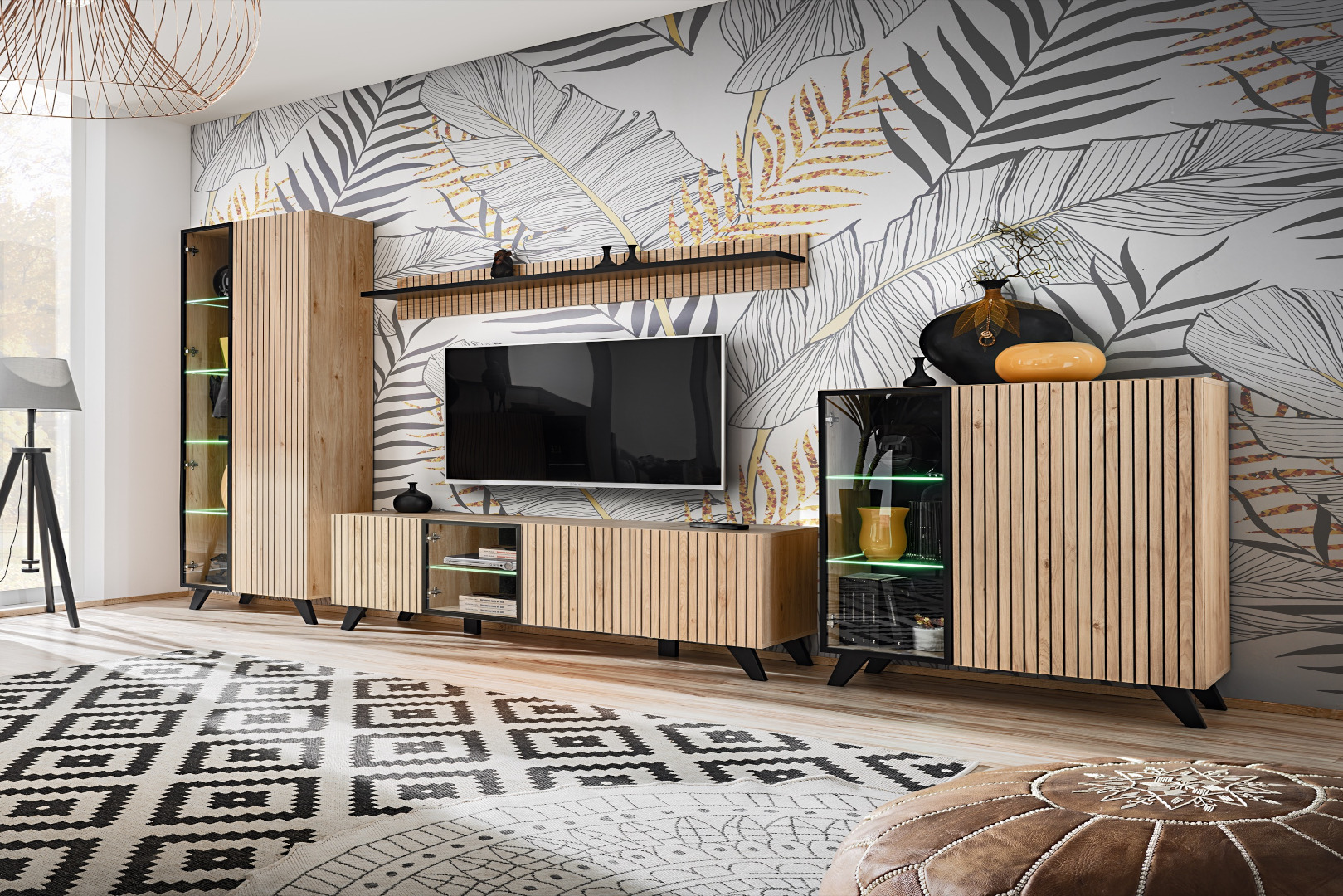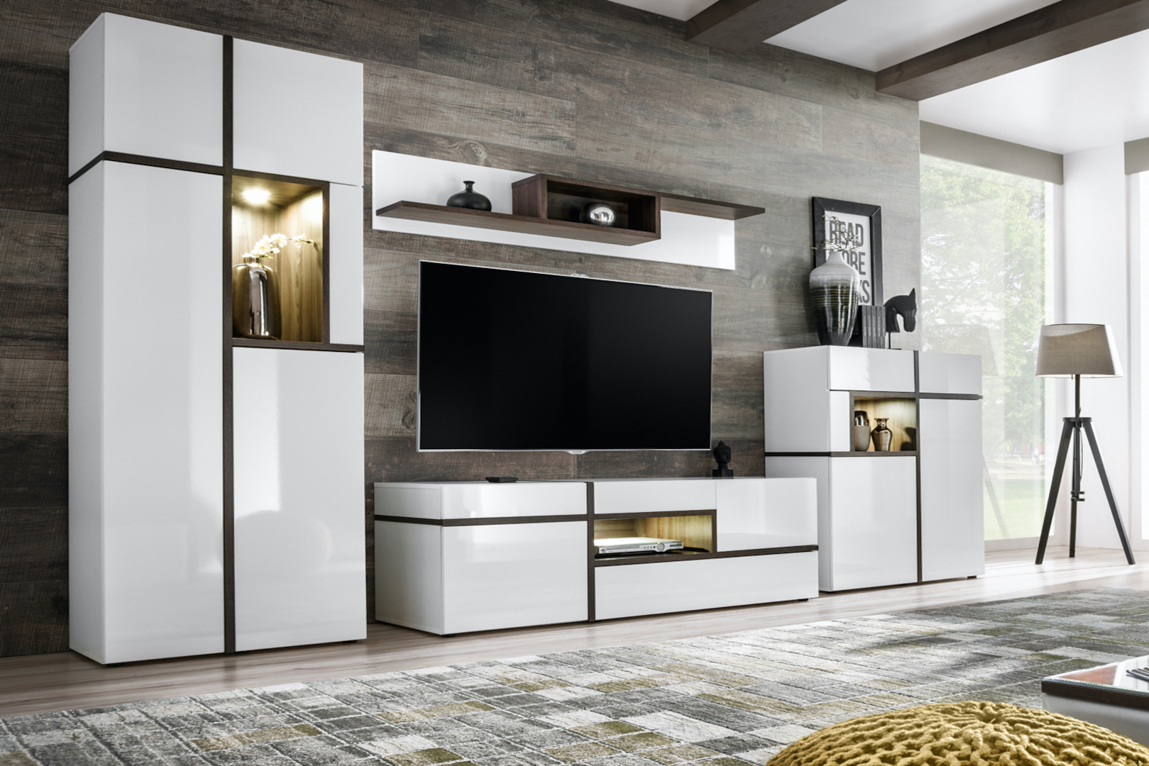 Each unit provides multiple shelves and cabinets for media devices, books, and décor. The clever design keeps your living room tidy, while the LED lights highlight the beauty of your furniture.